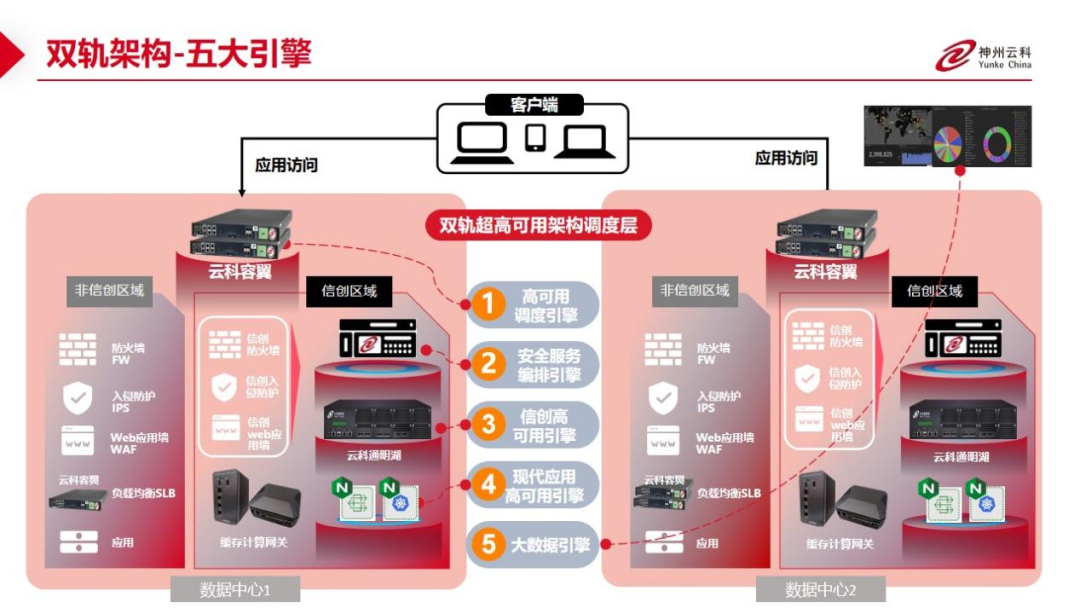 数据中心架构在自主创新的过程中分解为现有架构的非信创区和信创区的两个业务区域,在每个数据中心分为信创区和非信创区后,在两个区域之间的跨区跨域协同方法,k8凯发通过5大引擎实现多层次的应用可持续性实践。
